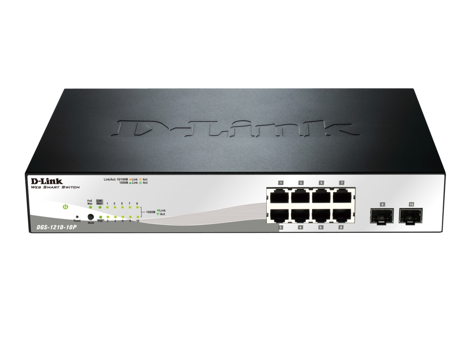 D-LINK мрежови продукти >> D-Link 10-port 10/100/1000 Gigabit PoE Smart Switch including 2 SFP