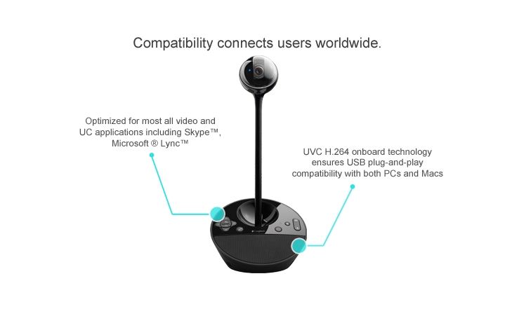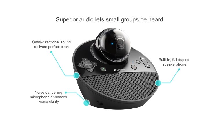 | Logitech BCC950 е висококачествена система за видеоконференции, която е идеалното решение за малки зали и екипи от 1 до 4 човека. Може да монтирате тази система бързо и лесно върху всяко бюро или конферетна маса. Тя ви осигурява видео с отлично HD качество и аудио с кристално чист звук. Тази система е енергийно ефективна, разполага с механизирана камера с оптимална височина, качествен високоговорител и микрофон, който намалява заобикалящия ви звук. Тя ви гарантира, че всяка ваша среща ще бъде проведена безпроблемно и успешно. Logitech BCC950 може да бъде свързана с Windows® и Mac® компютри чрез USB връзка и работи с повечето приложения за видео конференции като Skype for Business, Zoom, BlueJeans, Broadsoft, Cisco Jabber™, Fuze, LifeSize Cloud и Vidyo. |