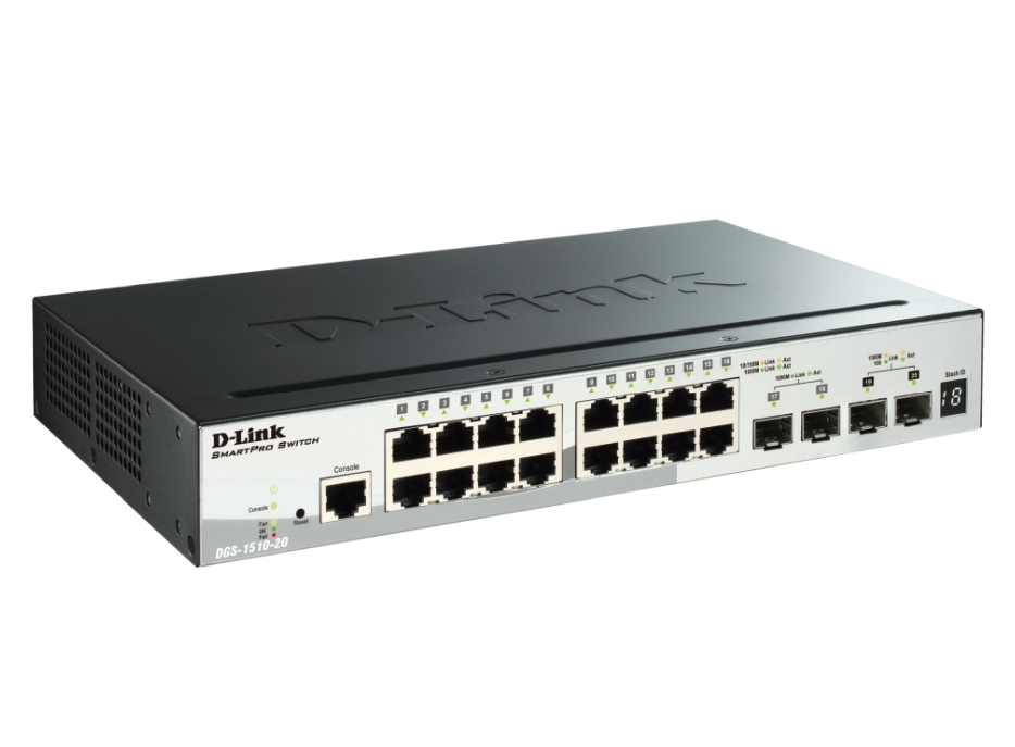 D-LINK мрежови продукти >> D-Link 20-Port Gigabit Stackable SmartPro Switch including 2 SFP ports and 2 x 10G SFP+ ports