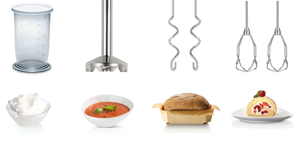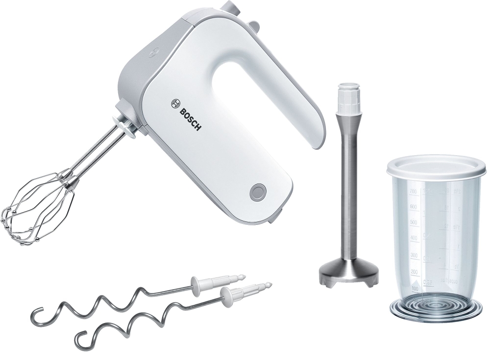 Handmixer, Bosch MFQ4070, Hand mixer, Styline, 500 W, White, with innovative FineCreamer stirrers, Included blender & transparent jug, 5 speed settings, additional pulse/turbo setting, white