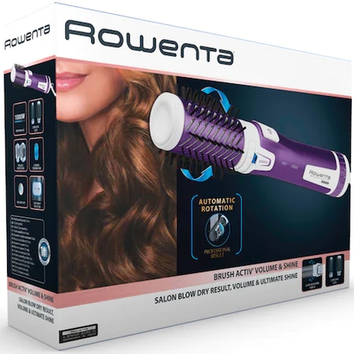Въртящата се електрическа четка Brush Activ Volume & Shine от Rowenta Ви осигурява професионално оформена прическа, която постигате у дома. Благодарение на уникалната двойна йонна функция, косата ви става лъскава и блестяща и не се наелектризира. В комбинация с автоматичното завъртане на четката, мощността ? от 1000 W и керамичното ? покритие, тя изсушава косата бързо и лесно. Четката има функция за въртене наляво и надясно, като по този начин имате възможността да изберете различни начини за стилизиране на косата си. |