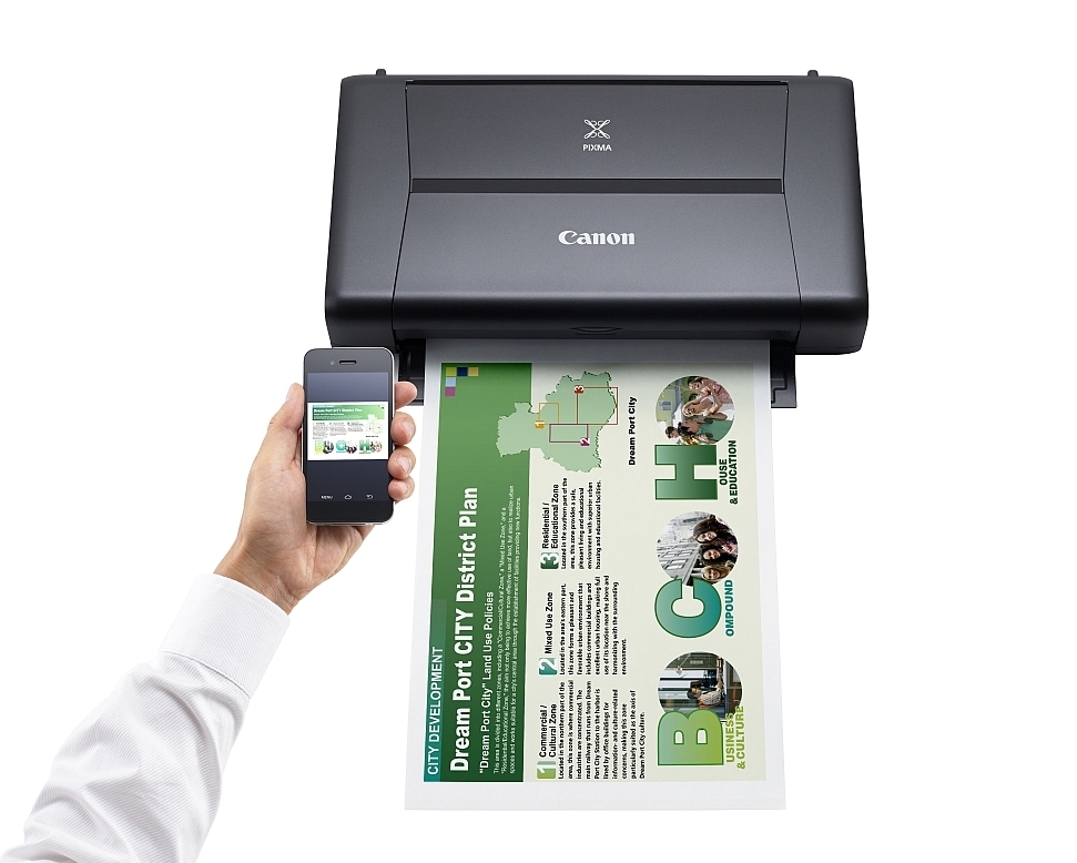 | Съвършен преносим печат - Свързвайте се и печатайте в движение. Където и да се намирате, този лек и тънък принтер е съвършеният партньор - за преносим и стилен печат от смартфони, таблети и облачни услуги благодарение на усъвършенстваната Wi-Fi комуникация. Облачна свързаност - Свържете се директно към облака. Насладете се на свободата да печатате без усилия от интернет, където и да сте, чрез своя смартфон или таблет. С усъвършенстваната технология PIXMA Cloud Link можете да печатате офис документи, PDF файлове и JPG изображения директно от облачни услуги, като например Dropbox, Google Drive, OneDrive и Evernote. Наред с това, можете да печатате снимки само за секунди от Facebook, Twitter и онлайн албуми, без да използвате компютър. Съвместимост със смартфони и таблети - Можете да управлявате принтера чрез смартфон. Просто изтеглете приложението Canon PRINT за вашия смартфон или таблет. С това приложение имате директен достъп до облачни услуги. Можете дори да проверявате състоянието на принтера, ръководството на потребителя или текущите нива на мастилата през Wi-Fi или интернет. Поддържат се също Apple AirPrint и Google Cloud Print, за да допълнят възможностите ви за мобилна свързаност. Изключително качество - Печатайте професионално изглеждащи документи с ясен текст и снимки с богат цветови контраст - благодарение на технологията FINE на Canon с усъвършенствана система с 5 мастила и разделителна способност на печат до 9600 dpi. Бърз печат. Насладете се на скорости от 9,0 ipm при черно-бял и 5,8 ipm при цветен печат, чрез които само за 53 секунди ще имате красива 10 x 15 cm снимка без бели полета. Рентабилен и удобен печат - За максимално удобство можете да зададете настройки на принтера за увеличаване броя на разпечатките чрез режима "Пестене на черно мастило". Не се тревожете, ако ви свърши черното мастило, когато сте навън. Принтерът ще продължи да печата, като създава черно, комбинирайки цветните мастила. Бъдете креативни - Забавлявайте се, докато изследвате своята креативност с Easy Photo Print+. Можете лесно да оформяте и печатате поздравителни картички, фотоколажи и много други с тази уеббазирана услуга, като използвате изображение от своя таблет, смартфон, настолен компютър или от облачни услуги. Безжичен печат - Възползвайте се от преносимост на най-високо ниво и бъдете мобилни с опционната акумулаторна батерия. Идеална за случаите, в които желаете да печатате на място без достъп до електрическа мрежа. |