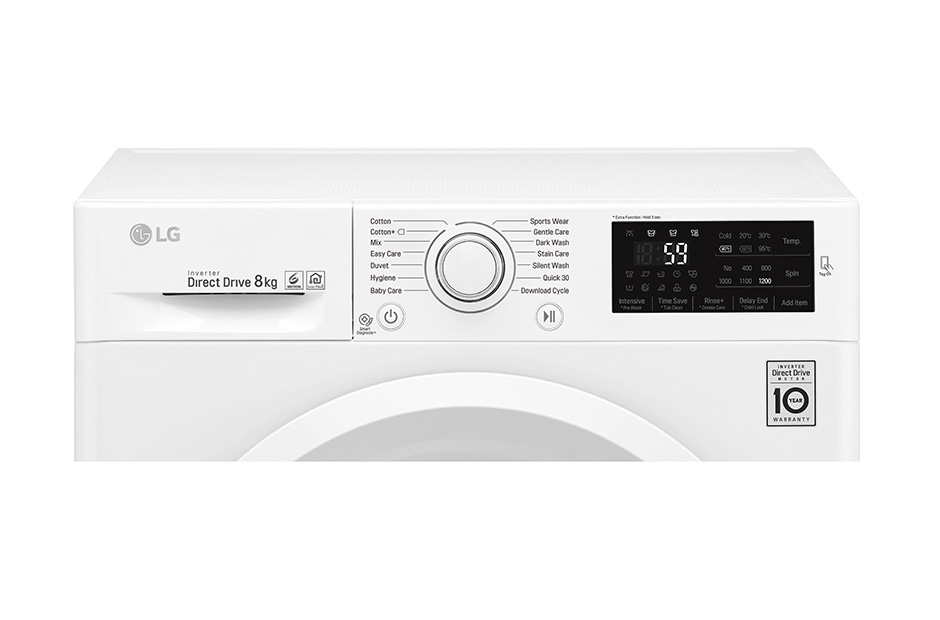 Пералня, LG F2J5TN3W, Washing Machine, 8 kg, 1200 rpm, A+++ energy class, Inverter Direct Drive, 14 programs, Smart Diagnosis, White
