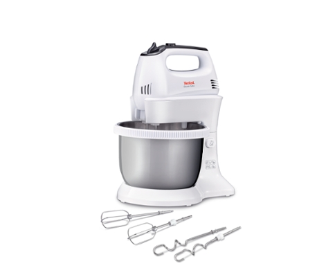 Миксер, Tefal HT312138, Quick mix Hand Mixer with bowl, 300 W, 5 Speeds + turbo, 2 Beaters, 2 Dough hooks, automatic rotating bowl, white & inox standbowl