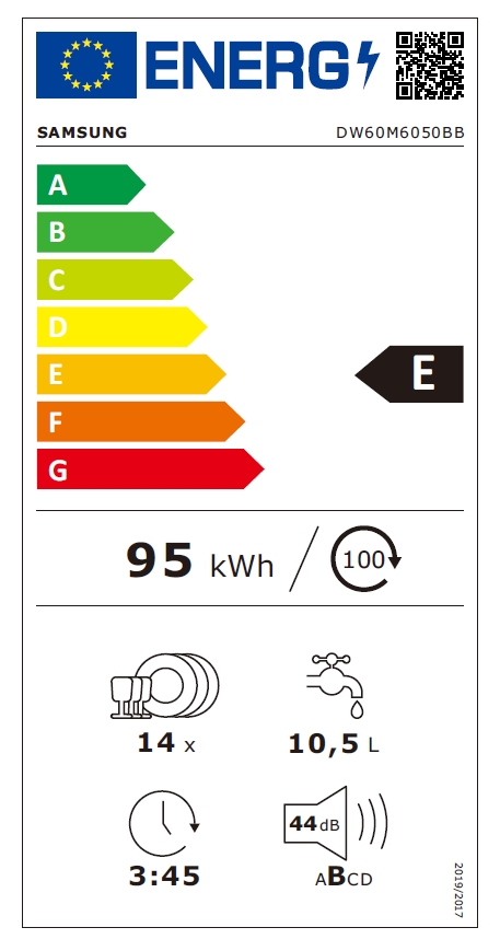 Съдомиялна машина, Samsung DW60M6050BB/EO, Dishwasher integrated, 60cm, 10.5l, Energy Efficiency E, Capacity 14 p/s, large display, 44dB