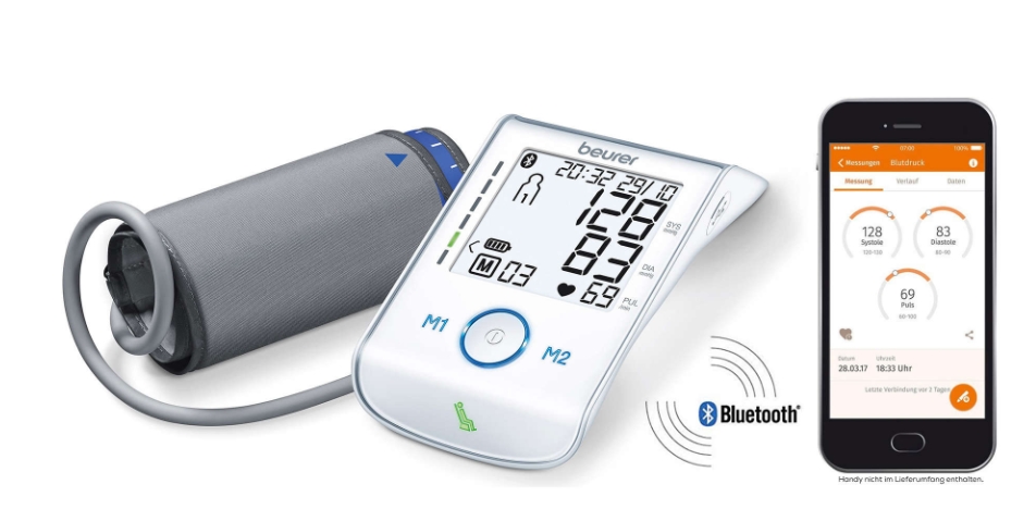 Апарат за кръвно налягане, Beurer BM 85 Blood pressure monitor; Bluetooth; XL display; two user memories; risk indicator; Arrhythmia detection; medical device; circumferences 22- 42 cm; storage bag