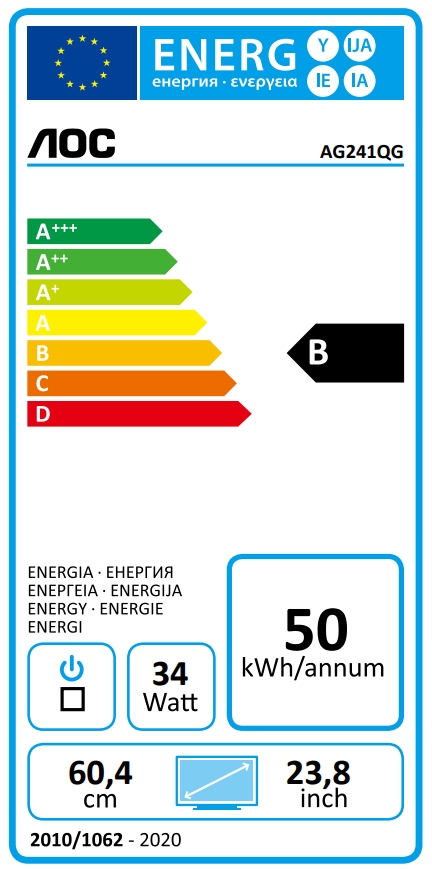 Монитор, AOC AGON AG241QG, 23.8" Wide TN LED, 1 ms, 50М:1 DCR, 350 cd/m2, 2560x1440@165Hz, USB, HDMI, DP, Speakers + Logitech G102 Prodigy Gaming Mouse