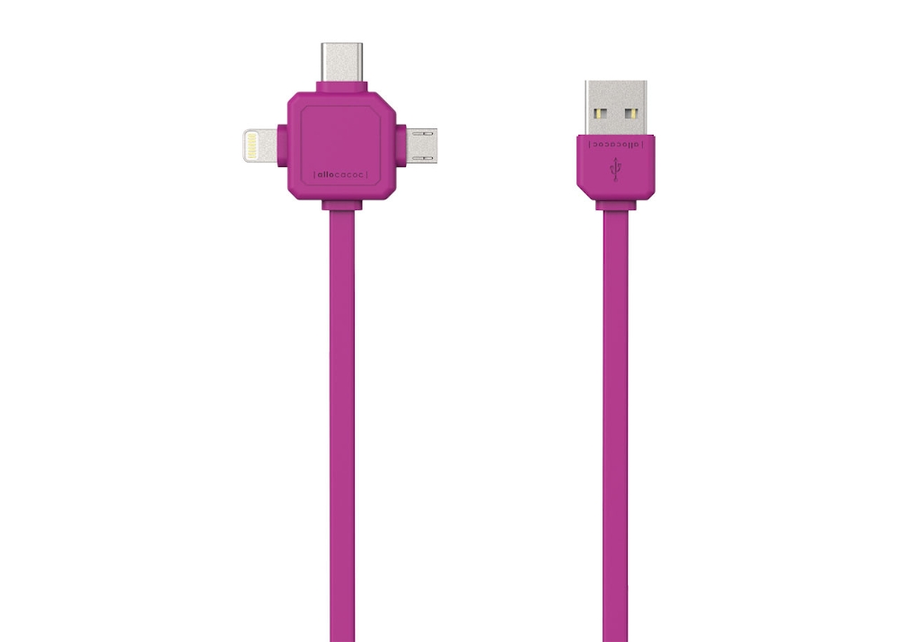 Кабел, Allocacoc USB cable 9003PK purple - USB type-C, Apple Lightning, Micro USB