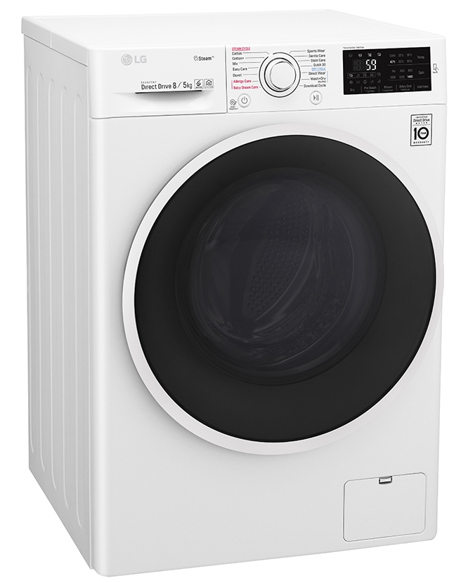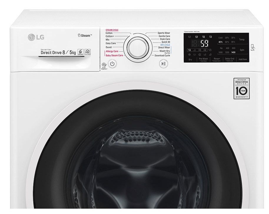 Пералня със сушилня, LG F4J6TG0W, Washing Machine/Dryer, 8 kg washing, 5 kg drying capacity, 1400 rpm, LED-display, A energy class, Steam technology, 6 Motion Direct Drive, White