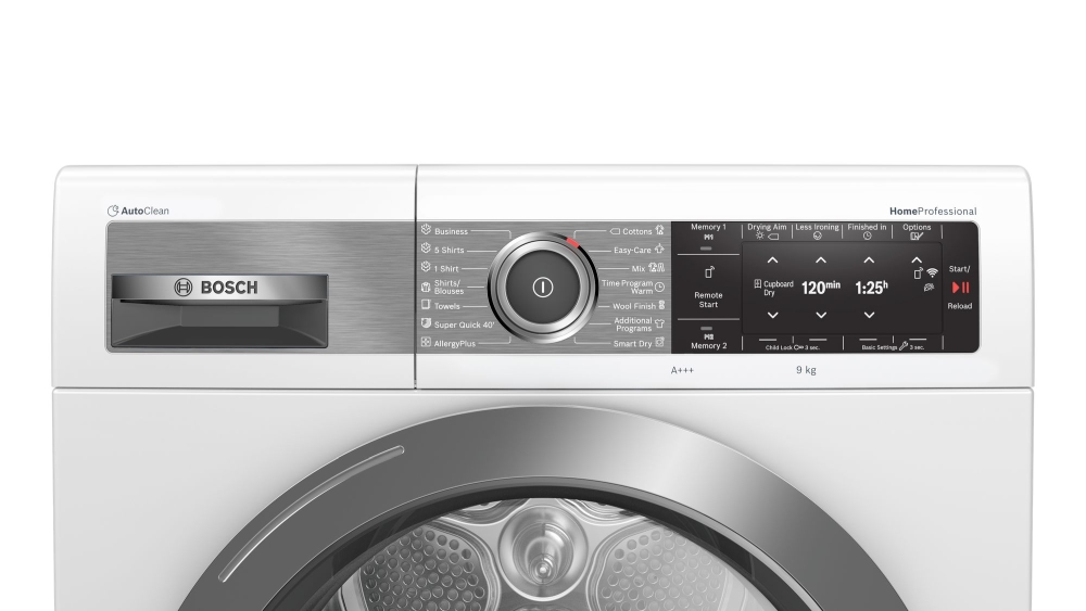 Сушилня, Bosch WTX87EH0EU, Home profesional drying machine with heat pump technology; 9kg A+++, Home Connect, AutoClean, Smart Dry & Iron Assist, display, 62dB