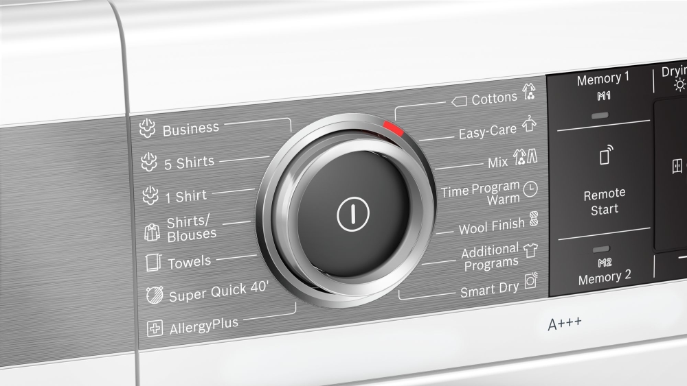 | Сушилните с центрофуги и пералните със сушилни на Bosch с AutoDry нежно обработват до десет килограма пране до вашето желано ниво на сухота. Сензорите измерват температурата и влажността, като при това защитават вашето пране от прекомерно високи температури, пресушаване и свиване. Независимо дали искате прането ви да е достатъчно сухо, за да го приберете направо в гардероба или просто достатъчно сухо за гладене - сега има настройка за това. Със системата Sensitive Drying прането се суши с умерен, топъл въздух, който идва от всички страни и деликатно се завихря благодарение на ребрата със Soft-дизайн, вместо да пада надолу върху щадящата тъканите уникална структура на барабана. Резултатът е меко пране без гънки. |
