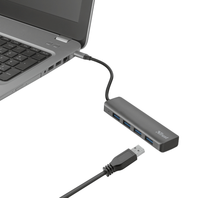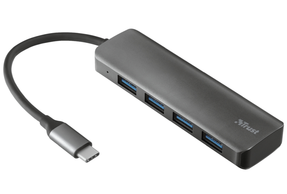 TRUST компютърна периферия и аксесоари >> TRUST Halyx Alum. USB-C to 4-Port USB3.2 Hub