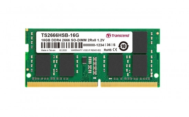 Transcend памети и аксесоари >> Transcend 16GB TS DDR4 2666Mhz SO-DIMM 2Rx8 1Gx8 CL19 1.2V