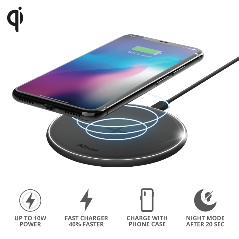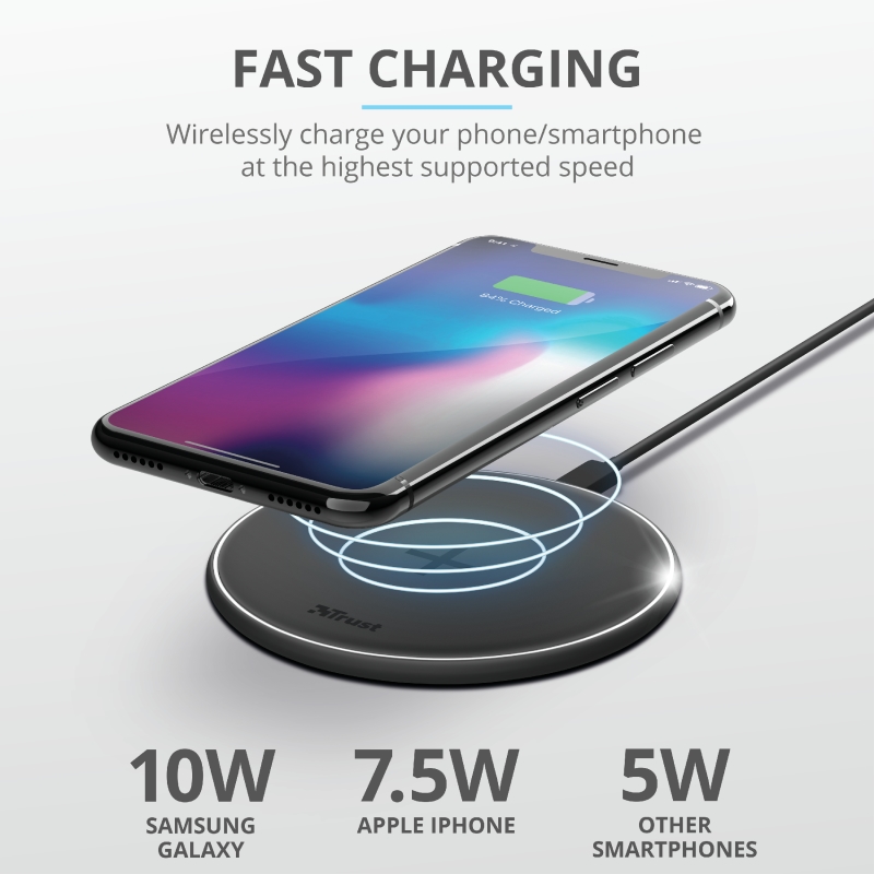 TRUST компютърна периферия и аксесоари >> TRUST Qylo Fast Wireless Charging Pad Black