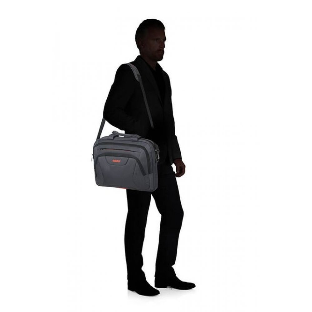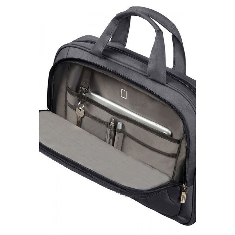 | At Work е новото предложение съвременни чанти и раници на Samsonite, подходящи за офис, колеж или университет. Тази чанта комбинира спортен дизайн и различни функционалности, така че всички ваши вещи, които са ви необходими са близо до вас. Тази чанта разполага с две къси дръжки отгоре, стандартни ципове, външен джоб с цип, Smart Sleeve - система за прикрепяне към дръжката на количка, дълга дръжка, отделение за 10.1" таблет, отделение за 15.6" лаптоп, основно отделение и отделение за мобилен телефон и химикалки. |