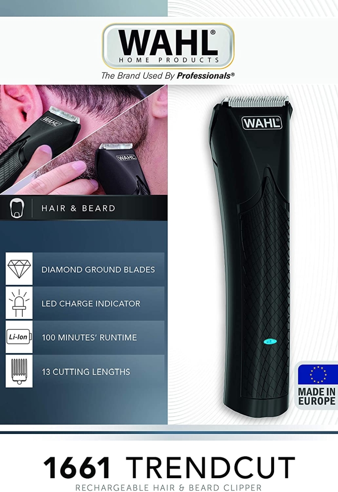 Машинка за подстригване, Wahl 1661.0465, TrendCut Lithium Ion, Lithium Ion Clipper Professional metal German made bladeset, Attachment combs and accessories