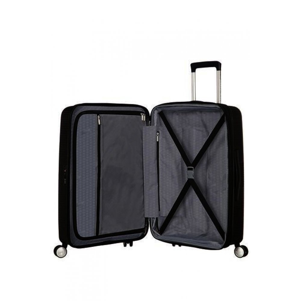 | Samsonite Soundbox е висококачествен куфар, който е част от една от най-влиятелните колекции на American Tourister, спечелила наградата Red Dot. Куфарът има модерен дизайн с контрастни матови и блестящи повърхности, които ви гарантират, че ще пътувате със стил. Освен това куфарът разполага с фиксирана TSA ключалка, възможност за разширение и удобна вътрешна организация, които ви гарантират подобрен комфорт по време на пътуване. Samsonite Soundbox разполага и със следните предимства и характеристики: мини дръжка отгоре и отстрани; телескопична дръжка; 4 двойни колелца; вътрешни колани тип "хикс"; разделителна преграда с цип. |