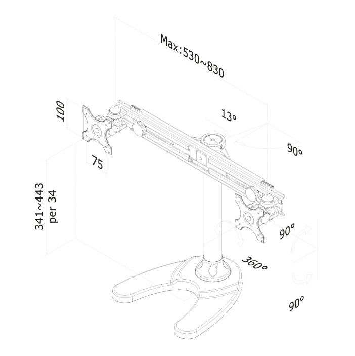 | Максимално натоварване, кг | 8 kg (per screen) |