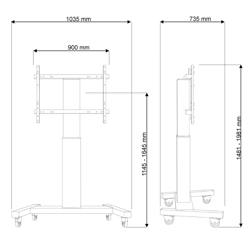 | Перфектен за използване в класна стая, заседателна зала, зала за презентации или обществен вход. Оптимално позициониране както за стояща, така и за седнала аудитория. Регулиране автоматично на височина над 50 см с дистанционно управление. От пода до центъра на екрана разстоянието варира от 120 до 170 cm. |