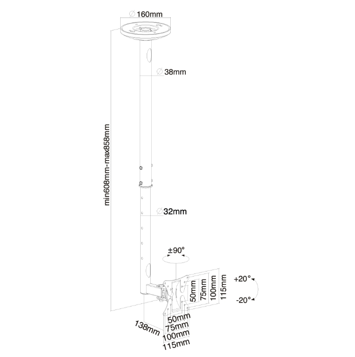 Стойка, Neomounts Flat Screen Ceiling Mount (Height: 60-85 cm)