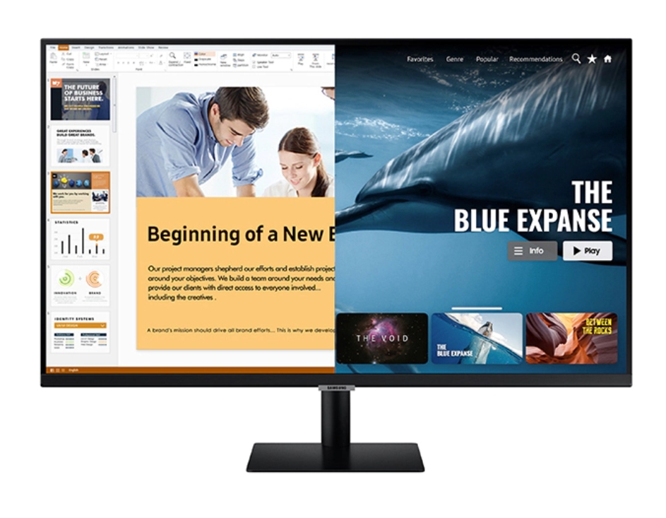 | Мониторът за всеки аспект от живота. Свърши си работата без да ти е необходим компютър благодарение на инсталирания Microsoft Office 365 или чрез дистанционен достъп до твоя офис компютър. След това премини към чистото забавление с помощта на интегрираната система за забавления. Никога не е било по-лесно да изгледаш наведнъж цял сезон от любимия ти сериал. Сега получаваш достъп до развлекателни приложения като Netflix, YouTube и HBO без да включваш своя компютър или лаптоп. Дистанционното управление и вградените високоговорители улесняват още повече домашните ти забавления. Работи без проблеми отвсякъде и увеличи производителността си чрез функциите за дистанционен достъп. Използвайки пакета Office 365, можеш да преглеждаш и редактираш документи, след което лесно да ги запазваш и съхраняваш в облака. Дори когато си вкъщи, дистанционният достъп ти дава възможност да работиш от разстояние на твоя настолен компютър в училище или в офиса. Наслади се на впечатляващо качество на картината, независимо дали е ден или нощ. Сензор измерва осветеността на околното пространство и автоматично регулира яркостта на изображението чрез функцията Adaptive Picture. Така дори посред бял ден, можеш да гледаш мрачни филми, без да се налага да присвиваш очи, за да различиш какво се случва на екрана. Приготви се да побеждаваш. Настрой екрана си на съотношение 21:9, за да откриеш до скоро скрити от очите ти зони от гейм сцените с Ultrawide Game View. Сега, когато играеш футболна игра, виждаш много по-голяма част от терена. А в игрите, в които шофираш, получаваш широка панорама на пътя пред теб. Впечатляващо качество на картината за работа и забавления. С 4 пъти повече пиксели от Full HD, смарт мониторът предлага повече екранно пространство и изумително живи и реалистични UHD образи. През деня преглеждай повече документи едновременно, а вечерта гледай филми в 4K качество като на кино. Портът USB-C ти позволява да захранваш с електричество, да предаваш данни и дори да изпращаш мониторни сигнали между устройства с една единствена връзка. Неговата архитектура с единична връзка създава приятна работна среда без проблеми и стрес. Твоят монитор наистина слуша това, което му казваш. Превключвай между приложения, пускай видеоклипове и други чрез функцията Voice Assistant или приложението SmartThings. Вече няма да ти се налага да превключваш между устройствата. Благодарение на функцията Automatic Source Switch Plus, твоят монитор моментално разпознава дали си включил ново устройство и показва правилния сигнал. Няма да ти се налага повече да търсиш в менюто правилния източник на сигнал. |