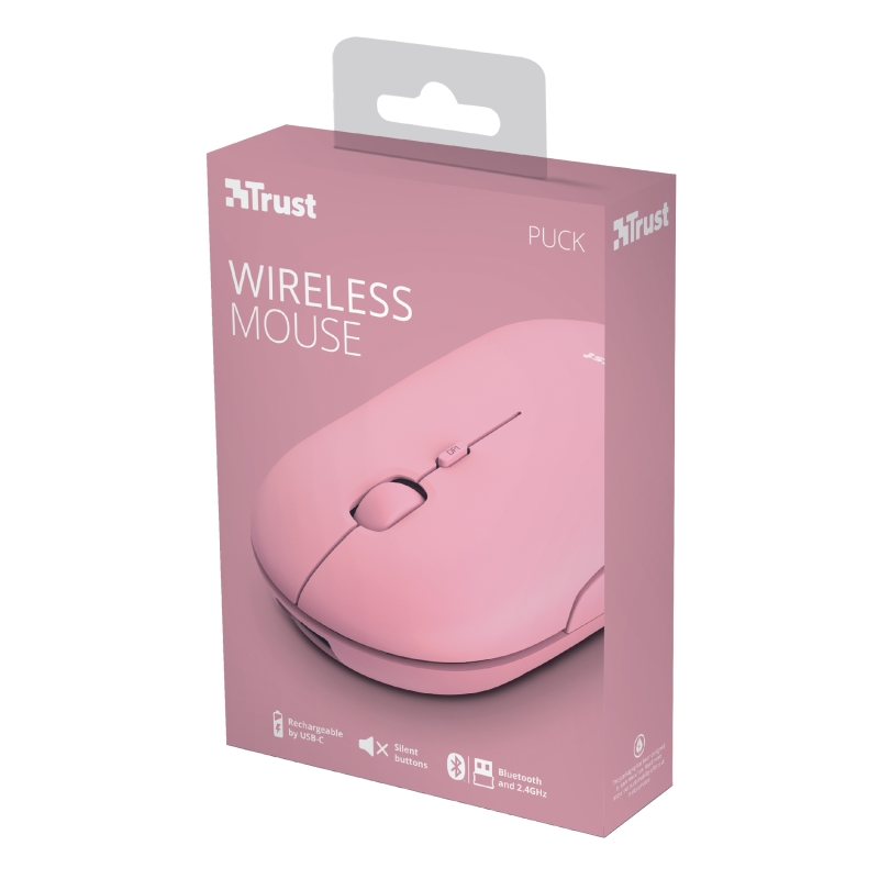 TRUST компютърна периферия и аксесоари >> TRUST Puck Wireless & BT Rechargeable Mouse Pink