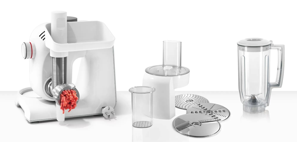 Кухненски робот, Bosch MUM58231, Kitchen machine, MUM5, 3D Planetary Mixing 1000 W, add. Plastic blender, Meat mincer, White - Silver