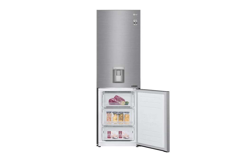 Хладилник, LG GBF61PZJMN, Refrigerator, Bottom Freezer, 341l, Water dispenser, Total No Frost, Smart Inverter Compressor, Multi airflow, "Eco" mode, Smart diagnostics, Moist Balance Crisper, Door Cooling+TM, Energy Efficiency E, Shiny steel