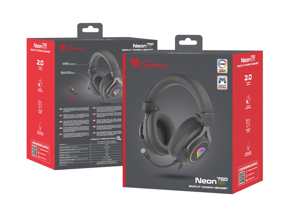 GENESIS компютърна периферия >> Genesis Gaming Headset Neon 750 With Microphone RGB Illumination Black