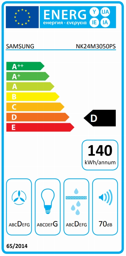Аспиратор, Samsung NK24M3050PS/U1, Wall-mount Suction Hood with 3-Speed extraction, 60cm, Energy Efficiency Class D, Number of Motors - 1, Noise Level - 70 dBA, Type of controls - Push button, Stainless Steel