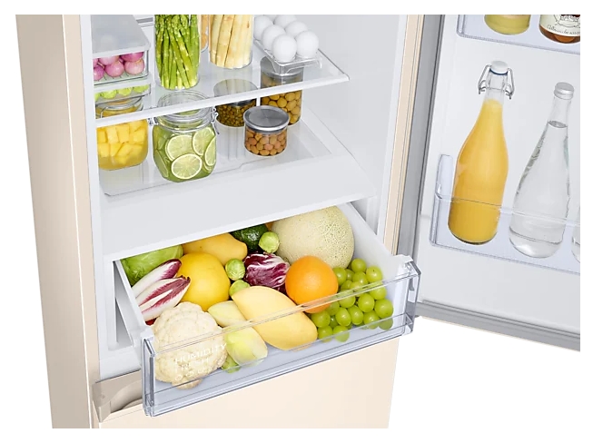 Хладилник, Samsung RB34T672FEL/EF, Refrigerator with SpaceMax Technology, Fridge Freezer, Total 344 l, refrigerator 230 l, freezer 114 l, Energy Efficiency F, All-Around Cooling, No frost, Power Cool function, External Display, 35 dB, 186/59.5/65.8, Light beige