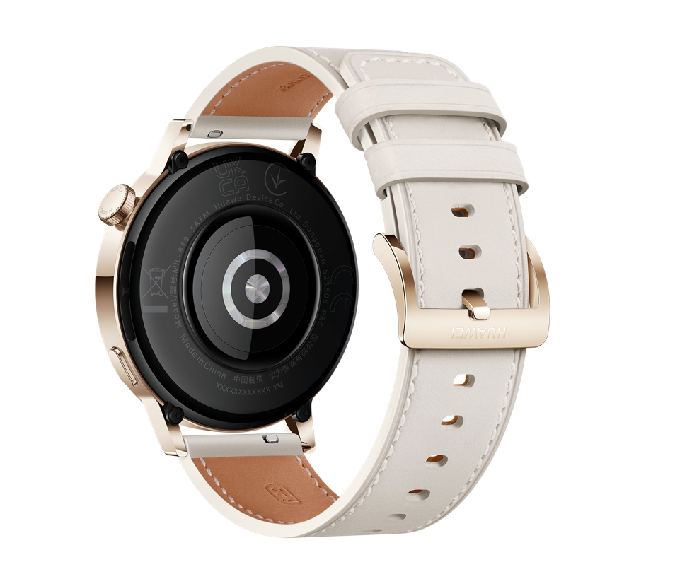 Часовник, Huawei Watch GT 3 42mm, Milo-B19V, 1.32", Amoled, 466x466, PPI 356, 4GB, Bluetooth 5.2, supports BLE/BR/EDR, 5ATM, Battery 292 maAh, Light Gold, White Leather Strap