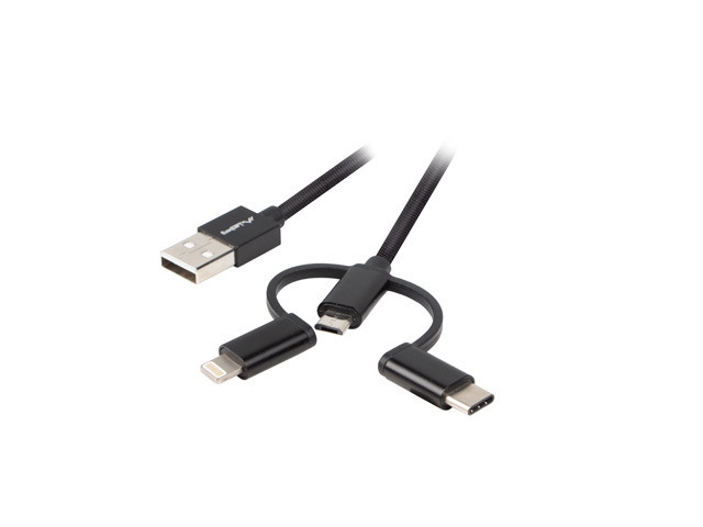 LANBERG кабели >> Lanberg 3in1 USB-A(M)->USB MICRO(M)+LIGHTNING(M)+USB-C(M) 2.0 1m