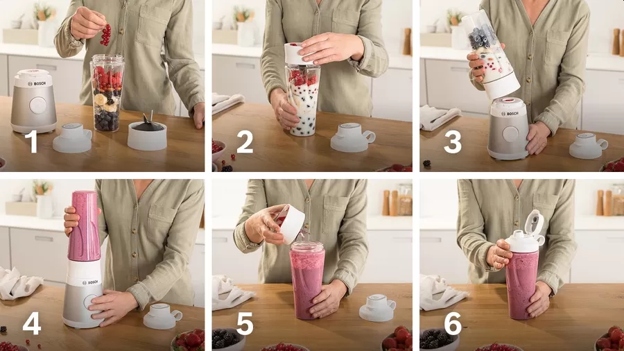 | Компактният и мощен мини блендер с непропусклива бутилка Tritan ToGo. Насладете се на здравословни смутита без парченца благодарение на високоскоростния блендер. Pro Performance System: оптимална текстура и перфектно свеж вкус за вашите смутита дори със замразени плодове и твърди съставки. High Bosch motor competence: мощен мини блендер с 450 W и до 40 000 оборота в минута ProEdge ножове: гладки резултати с ефективни и издръжливи остриета от неръждаема стомана - made in Germany. Качество, произведено в европейската фабрика на Bosch: издръжлив, надежден дизайн и висококачествени материали. Смесете директно в бутилка ToGo със защита от течове: наслаждавайте се на смутита в движение лесно и без грижи. |