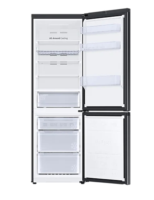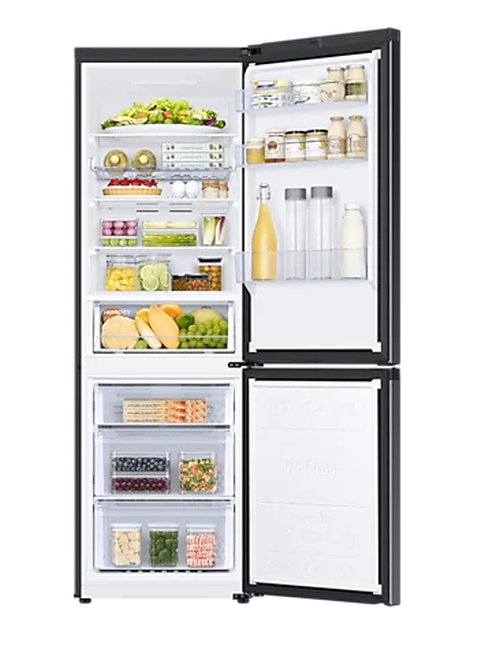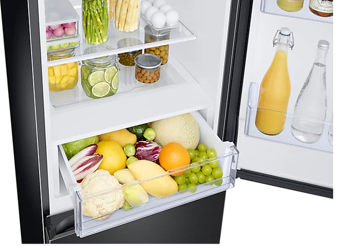 Хладилник, Samsung RB34T672EBN/EF, Refrigerator with SpaceMax Technology, Fridge Freezer, Total 344 l, refrigerator 230 l, freezer 114 l, Energy Efficiency E, All-Around Cooling, No frost, Power Cool function, External Display, 35 dB, 185.3/59.5/65.8, Black