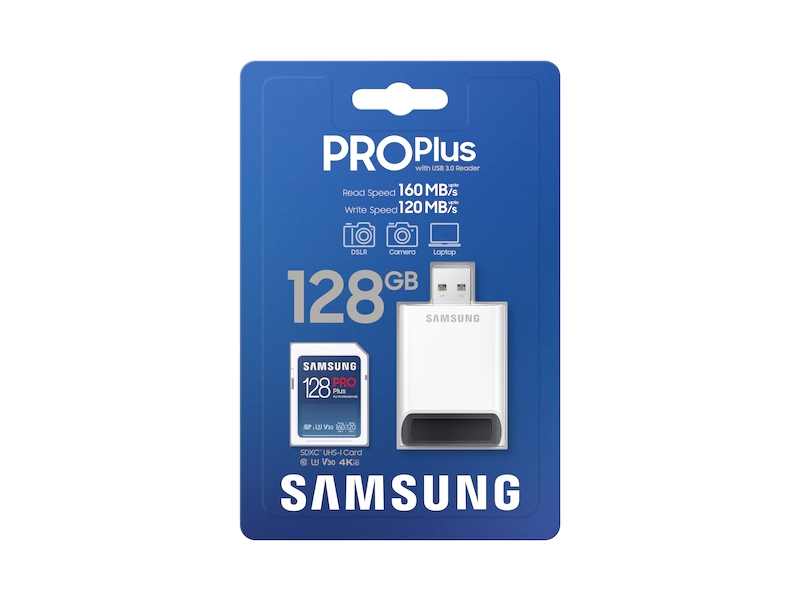 Памет, Samsung 128GB SD PRO Plus + Reader, Class10, Read 160MB/s - Write 120MB/s