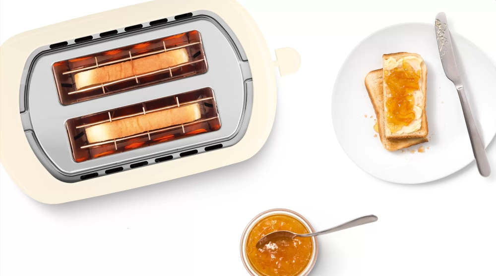 | Ако планирате релаксираща, небрежна закуска, тя е свързана с хрупкави хлебчета и топли кроасани. С вградената затопляща решетка хлебчетата остават перфектно свежи и се гарантират перфектни резултати. Равномерно препичане на хляба с автоматично центриране. Високо повдигане : улеснява премахването дори и на малки филийки хляб. Настройка за размразяване и затопляне: размразява тоста и го прави хрупкав. |
