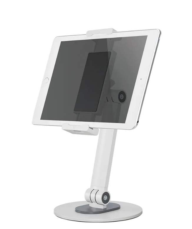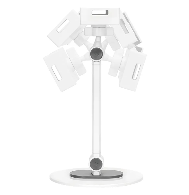 | Newstar DS15-540WH1 е универсална стойка за таблети с големина до 12.9 инча и тегло до 1 кг. Тази стойка е идеалният избор, когато искате да провеждате разговори без да държите таблета си, когато гледате филми или играете любимите си игри. Интегрираният сферичен механизъм позволява на стойката да се върти на 360°, за да можете да сменяте позицията на стойката от хоризонтална към водоравна позиция и обратно. Освен това интелигентните опции за накланяне (270°) и завъртане (104°) позволяват на стойката да променя позицията си, така че да ви осигури оптимален ъгъл на гледане. Меките гумени подложки предпазват вашето устройство от всякакви драскотини, а здравата основа с противоплъзгащи се силиконови подложки осигурява стабилно позициониране на вашето устройство. |