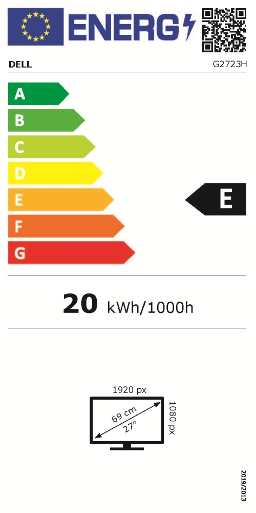Монитор, Dell G2723H, 27" LED Gaming, IPS AG, FullHD 1920x1080 at 240 Hz, sRGB 99%, NVIDIA G-SYNC Compatible, FreeSync Premium, 0.5 ms GtG, 1000:1, 400 cd/m2, USB 3.2 hub, HDMI, DisplayPort, ComfortView, Height Adjustable, Pivot, Swivel, Tilt, Black