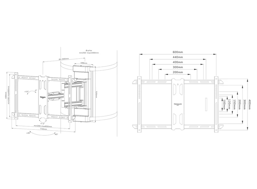| Други | Full motion; The mount is suitable for Ф25-100 cm cylinder, square and rectangular pillars; The mount is equipped with metal cable management to secure any loose cables |