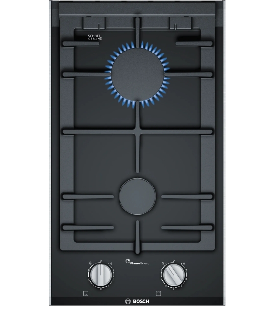 Готварски плот, Bosch PRB3A6B70, Gas domino, 30 cm Glass ceramic, FlameSelect, Black