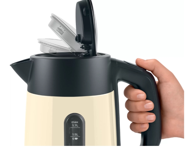 Електрическа кана, Bosch TWK4P437, Kettle, DesignLine, 2000-2400 W, 1.7 l, OneCup function, Beige