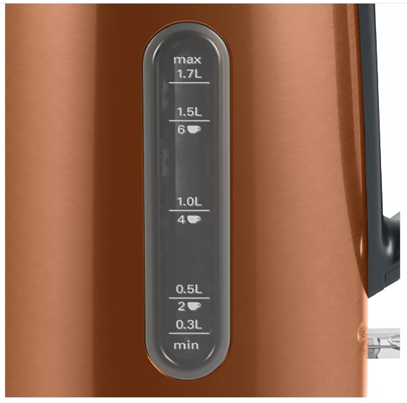 Електрическа кана, Bosch TWK4P439, Kettle, DesignLine, 2000-2400 W, 1.7 l, OneCup function, Copper