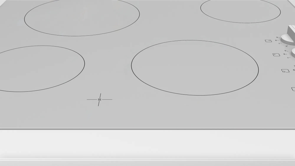 Готварски плот, Bosch PKE612CA2E, SER2, Electric cooktop, 4 zones, Sword knobs, 9 power levels, frameless, White, 6,6 kW, 60cm