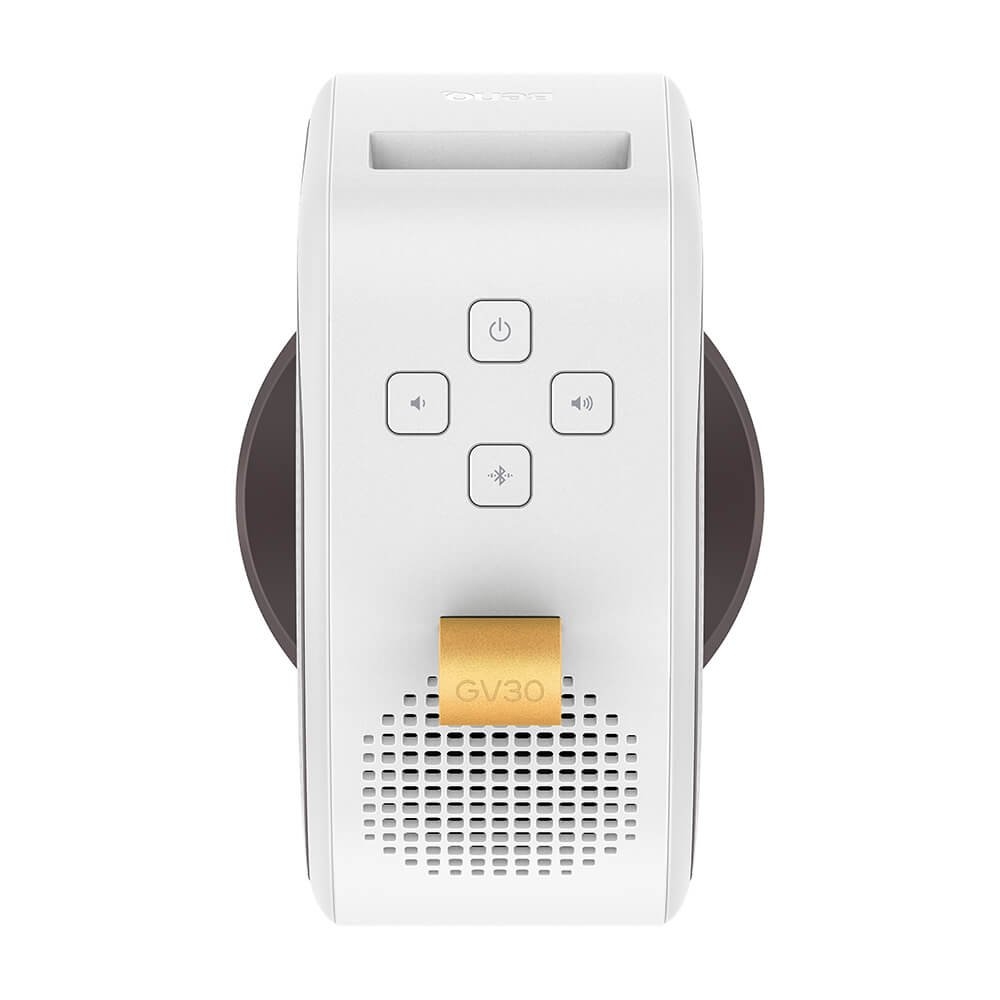 | Отпуснете се в уюта на дома си с този невероятен проектор и гледайте любимите си филми и сериали както никога досега. Въртящият се обектив на BenQ GV30 ви предлага невероятна гама от проекционни ъгли и възможността да се насладите на оптимални прожекционни ъгли, без да се налага да създавате импровизирана стойка. Интегрираната 2.1-канална звукова система с двойни 4W средночестотни високоговорители и точен 8W високоговорител за ниски честоти предлага невероятно аудио кинематографично потапяне в действието на екрана пред вас. Невероятното аудио качество на проектора ви гарантира, че ще се насладите на истинско кино изживяване от удобството на дома ви. Освен това може да възпроизвеждате музика директно от проектора чрез вградените приложения за стрийминг и Bluetooth възможност! Проекторът разполага с CinematicColor на BenQ, който ви осигурява автентични цветове, които ще предизвикат дълбоки чувства във вас и ще оставят трайно впечатление във всеки потребител. Освен това ще можете да изпитате ярък контраст и реалистични сцени с яркост от 300 лумена и 720p HD яснота. Освен това този невероятен проектор с безпроблемен интерфейс и гласов асистент идва с вече внедрено многофункционално приложение, което ви осигурява море от забавления! Моля, вижте подробна информация относно прожекционните разстояния и размерите на екрана на следния линк: http://projectorcalculator.benq.com/ |