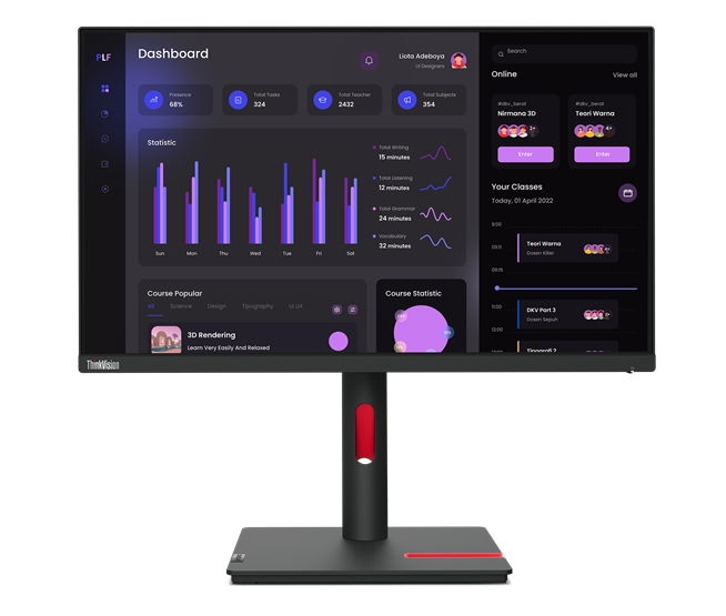 | ThinkVision T24i-30 е страхотен 23.8-ичнов монитор, който разполага с редица иновации, които ви гарантират подобрен работен процес и по-бързо изпълнение на всяка ваша задача на работа. Неговият 23,8-инчов FHD IPS екран с широка цветова гама от 99% sRGB ви гарантира цветове с невероятна жизненост и точност, дори когато гледате екрана от широк ъгъл. Можете да настроите монитора за по-удобно и приятно гледане с функциите за накланяне, повдигане и завъртане чрез ергономичната стойка. С 90% площ на екрана, той е има практически безрамков 3-странен дизайн, който ви помага да останете фокусирани върху дисплея по-лесно и да се разсейвате много по-малко. Интегрираната технология Natural Low Blue Light намалява вредната синя светлина, като същевременно предоставя цветове с висока точност. В допълнение, T?V Rheinland Eye Comfort сертификатът на монитора ThinkVision T24i-30 ви позволява да правите повече, като предпазва очите ви от умора дори по време на дълги часове на работа. Можете също така да преглеждате повече данни и да извършвате много задачи по-ефективно с поддръжката на няколко монитора. Този монитор включва цял свят от функции, без да оказва влияние върху околната среда, като следва най-новите разпоредби на TCO 9.0. Мониторът ThinkVision T24i-30 е мощност, създадена да превърне работата ви в удоволствие. |