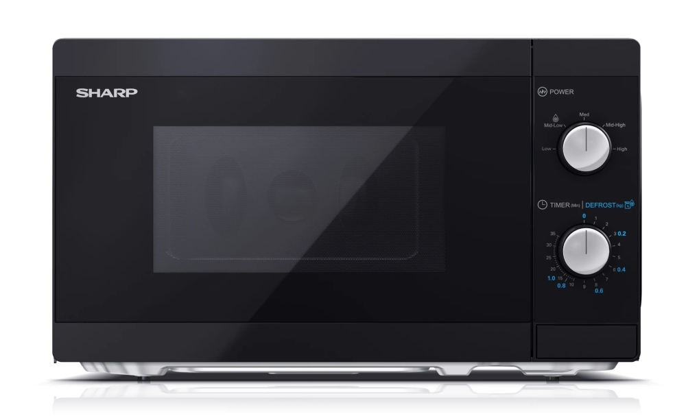 Microwave, Sharp YC-MS01E-B, Manual control, Cavity Material -steel, 20l, 800 W, Defrost, Silver/Black door, Cabinet Colour: Black