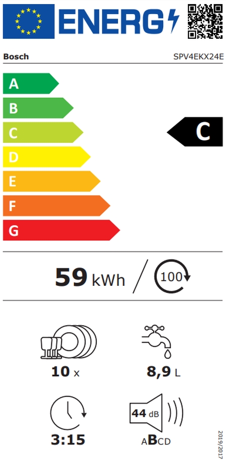 Dishwasher, Bosch SPV4EKX24E SER4 Dishwasher fully integrated 45cm, C, EcoDrying, 8,9l, 10ps, 6p/5o, 44dB(C), Silence 41dB, Rackmatic, HC