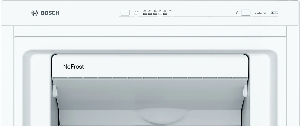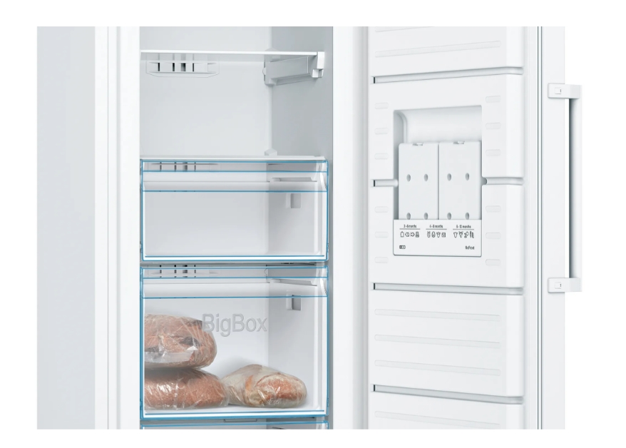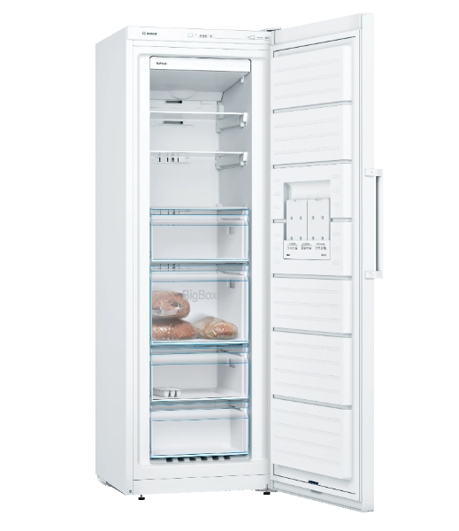 Фризер, Bosch GSN33VWEP SER4 FS upright freezer, NoFrost, E, 176/60/65cm, 225l, 39dB(C), IC, 4 drawers (1 BigBox), 3 shelfs, handle, white
