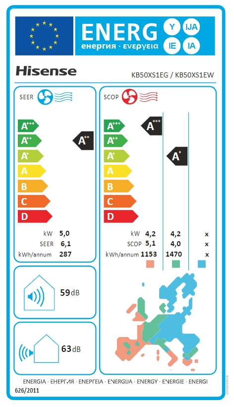 | Ниво на шум на вътрешно/външно тяло, dB | Minimum: 59/63 dB |
